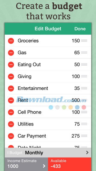 Goodbudget là ứng dụng tài chính cá nhân miễn phí, không hiển thị quảng cáo. Phiên bản miễn phí cung cấp 10 phong bì, tương ứng với 10 báo cáo tài chính thông thường và 10 báo cáo năm. Sử dụng các phong bì ảo để lên kế hoạch chi tiêu và cân bằng thu chi hiệu quả cho cả cá nhân và công việc.