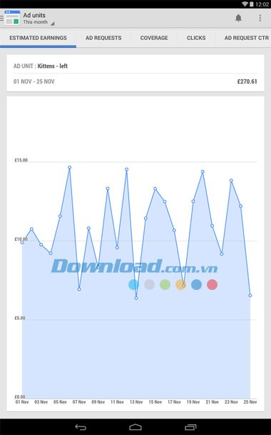 Ứng dụng Google AdSense dành cho hệ điều hành Android mang đến một phương thức tiện lợi để theo dõi các thông tin quan trọng từ tài khoản AdSense và AdMob của bạn.