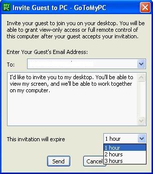 Để mời máy tính khác truy cập, chuột phải vào biểu tượng chương trình trên thanh taskbar và chọn Invite Guest to PC. Nhập địa chỉ email của tài khoản đăng ký máy khách, đồng thời có thể giới hạn thời gian hiệu lực của lời mời.
