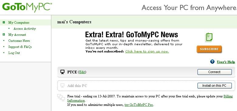 Phần mềm GoToMyPC cho phép người dùng thao tác trên máy tính Mac hoặc PC của mình ở mọi địa điểm.