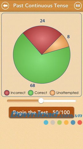 Điểm nổi bật của Grammar Express là mô-đun "Pie chart", cho phép theo dõi sự tiến bộ của người học trong từng chủ đề cụ thể hoặc trong các bài thi thử.