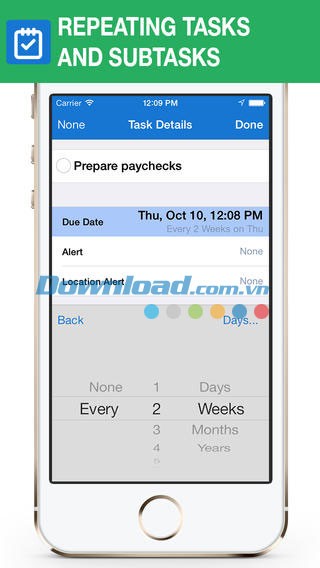 Người dùng có thể thiết lập các nhiệm vụ lặp đi lặp lại theo chu kỳ (hàng ngày, hàng tuần,...). Ví dụ, việc "thanh toán hóa đơn thẻ tín dụng" có thể được lên lịch mỗi tháng.
