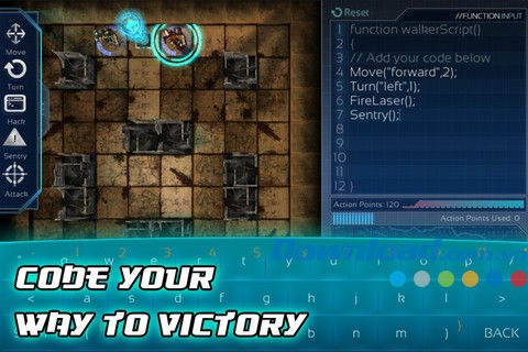 Chạm vào CodeWalker trên bản đồ để chọn nhân vật. Nhân vật của bạn sẽ được đánh dấu màu xanh, còn đối thủ là màu đỏ. Để điều khiển, chọn nhân vật và nhập mã lệnh vào cửa sổ Function Input.