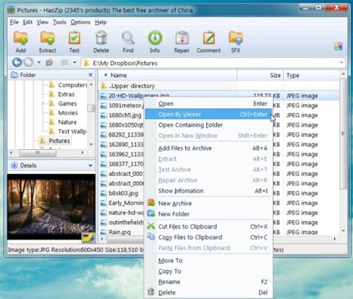 Mặc dù tốc độ nén của HaoZip không nhanh hơn và kích thước nén tương đương với 7zip, ứng dụng này cung cấp một số tùy chọn bổ sung đáng giá. Điển hình là khả năng xem và chỉnh sửa hình ảnh trực tiếp trong giao diện HaoZip, thêm các tập tin lưu trữ, sao chép hình ảnh, chỉnh sửa, cắt giảm các mục trong clipboard, mở thư mục chứa và thực hiện các thao tác như di chuyển, đổi tên hoặc xóa các mục thông qua menu chuột phải.