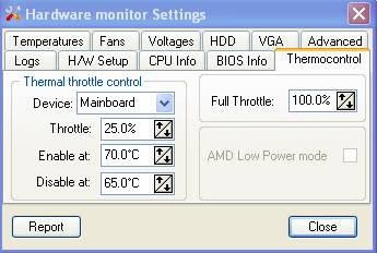Tab này cho phép bạn tùy chỉnh trạng thái của mainboard hoặc CPU khi vượt quá giới hạn nhiệt độ. Trong khung Thermal throttle control, bạn có thể chọn thiết bị và kích hoạt hoặc vô hiệu hóa tính năng điều khiển nhiệt độ tại mục Enable at hoặc Disable at. Tính năng này đặc biệt hữu ích trên các mainboard đời mới, giúp máy tính tự động chuyển sang chế độ tiết kiệm điện để bảo vệ hệ thống.