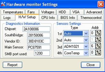 Tab này cho phép bạn xác định chính xác chip trên mainboard với các thiết bị mà chương trình hỗ trợ. Trong khung sensors Settings, mục Types, bạn nên kiểm tra các dòng bên dưới để đảm bảo thiết lập chính xác cho mainboard của mình.