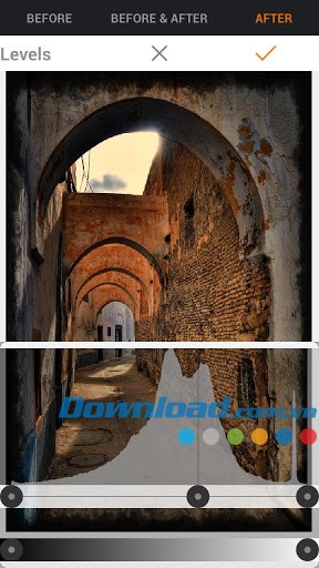 Ứng dụng cho phép điều chỉnh level, giúp bạn tinh chỉnh tông màu trắng và đen một cách chính xác.
