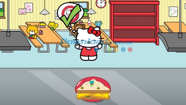 Bạn sẽ tương tác với Hello Kitty trong căn tin trường học và giúp Kitty lựa chọn một bữa trưa vừa ngon miệng, vừa đầy đủ dinh dưỡng.