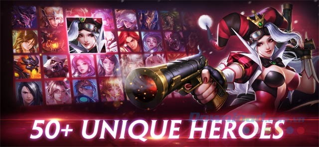 Lựa chọn từ danh sách hơn 50 nhân vật độc đáo, bao gồm cả huyền thoại Lý Tiểu Long, cùng vô số anh hùng mới được cập nhật thường xuyên.