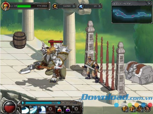 Nhiệm vụ của người chơi không chỉ là di chuyển từ trái sang phải và tấn công quái vật, mà còn có thể tự do di chuyển lên xuống. Với vũ khí trong tay, người chơi có thể tung ra những đòn tấn công mạnh mẽ vào kẻ địch và các chướng ngại vật như thùng gỗ hay tường thành.