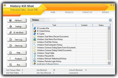 Ngoài ra, History Kill Shot còn có khả năng gỡ bỏ các chương trình Windows không cần thiết, chặn quảng cáo Flash, tiêu diệt các đoạn mã độc hại, và bảo vệ trang chủ mặc định cũng như các chương trình Windows mặc định khác.