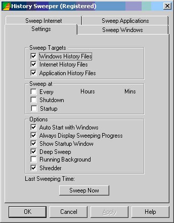 Tất cả những khó khăn này sẽ được History Sweeper 3.23 giải quyết một cách dễ dàng và nhanh chóng. Khi cài đặt, chương trình sẽ chạy ngầm theo mặc định. Để khởi động, bạn chỉ cần nhấp đúp vào biểu tượng History Sweeper ở khay hệ thống.