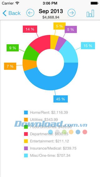 Các tính năng nổi bật của ứng dụng HomeBudget Lite for iOS:
