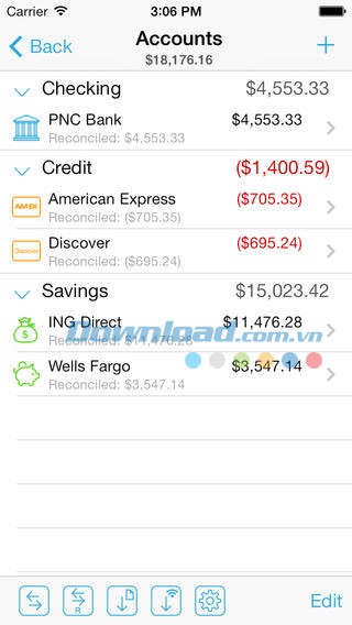 Hỗ trợ nhiều loại tài khoản như tài khoản thanh toán, tài khoản tiết kiệm, thẻ tín dụng, thẻ ghi nợ, tiền mặt...