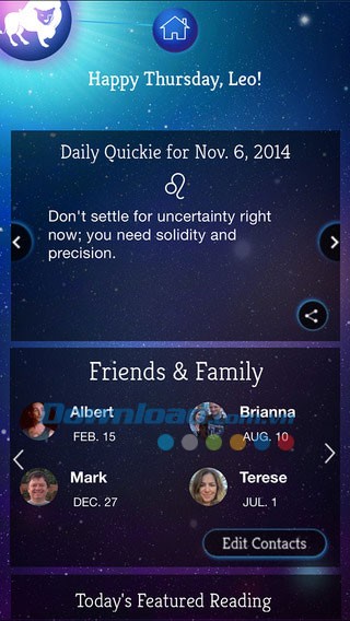 Horoscopes by Astrology.com giúp người dùng dễ dàng tiếp cận những nội dung quan tâm. Bạn có thể xem bói theo chu kỳ, theo dõi vận mệnh của bạn bè và người thân. Giao diện Home được thiết kế mới giúp bạn tìm kiếm mọi nội dung một cách nhanh chóng. Thêm vào đó, bạn có thể tích hợp horoscope hàng ngày vào mục Today để cập nhật thông tin thường xuyên.