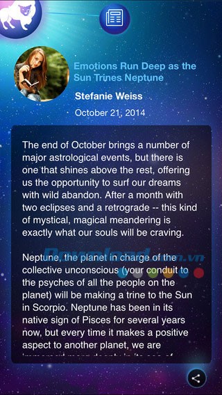 Horoscopes by Astrology.com for iOS là một ứng dụng giải trí thú vị, cung cấp thông tin bói vận cho 12 cung hoàng đạo dựa trên các nguyên tắc của Chiêm tinh học phương Tây. Ứng dụng này được phân phối miễn phí trên các thiết bị iPhone, iPad và iPod Touch.