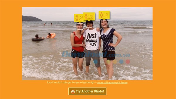 Ứng dụng sẽ nhanh chóng phân tích hình ảnh, xác định các khuôn mặt và đưa ra dự đoán về độ tuổi và giới tính của từng người.