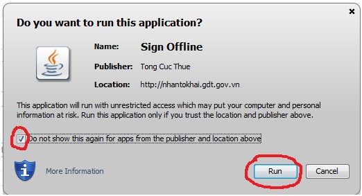 Hãy lựa chọn “” và sau đó bấm vào nút “Run”.