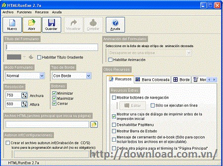 Trước khi tiến hành tạo file .exe, HTMLRunExe cung cấp nhiều tùy chọn để kiểm soát cách nội dung HTML sẽ được hiển thị sau khi chuyển đổi. Bạn có thể lựa chọn việc kích hoạt hoặc vô hiệu hóa các thành phần như: