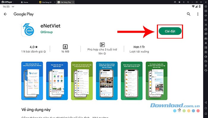 Bước 5: Bạn sẽ được chuyển hướng đến trang tải ứng dụng trên Cửa hàng Google Play. Nhấn nút Cài đặt để bắt đầu tải eNetViet về máy.