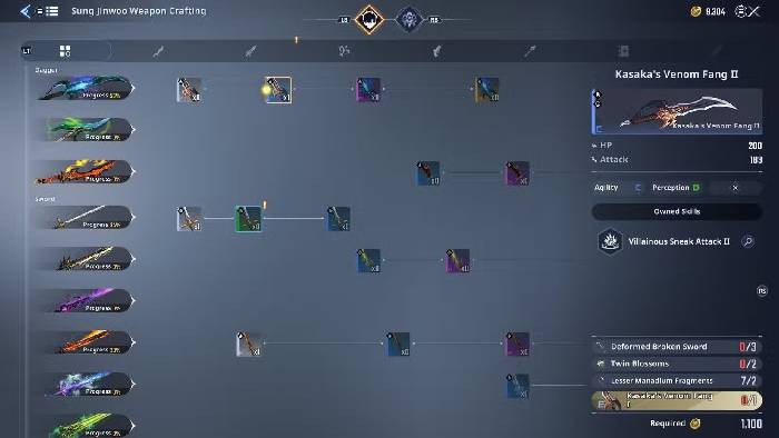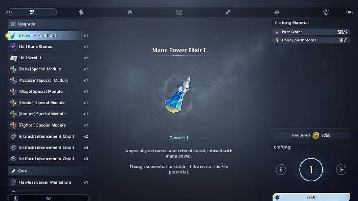 Một tab khác cũng rất quan trọng cho phép game thủ tạo ra các tài nguyên cần thiết như thuốc hồi phục và các nguyên liệu chế tạo. Người chơi nên luôn mang theo một vài lọ potion cho Jinwoo trước khi tham gia trận chiến. Điều này sẽ cung cấp thêm các buff hữu ích trong những thời điểm then chốt và tăng cường khả năng sống sót.