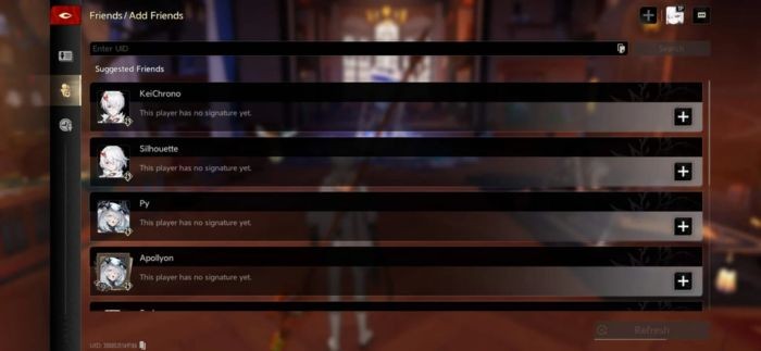 Mỗi người chơi sẽ sở hữu một UID (User ID) duy nhất, dùng để tìm kiếm và thêm bạn bè. Để tìm UID của bản thân: