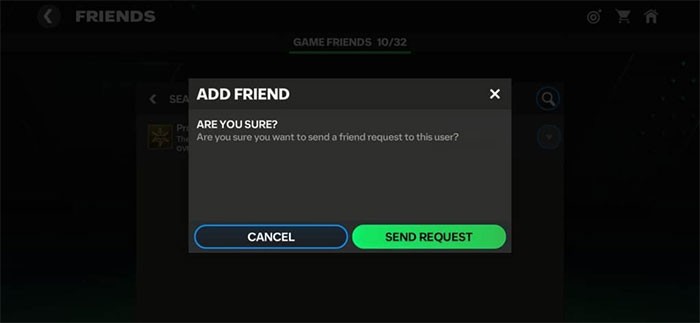 Khi tên người dùng của bạn bè xuất hiện, hãy chọn nút Add Friend kế bên và gửi yêu cầu bằng cách nhấn vào Send Request.