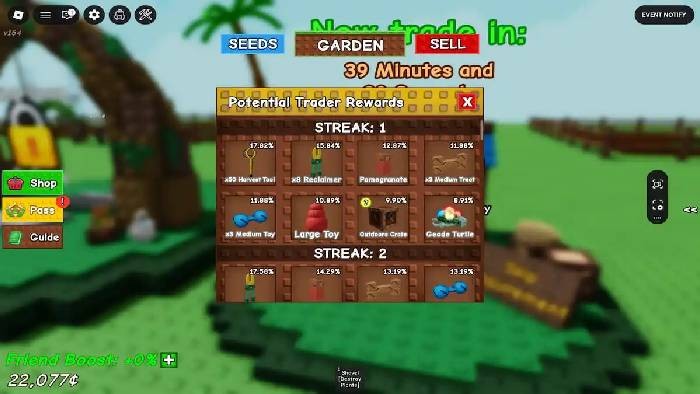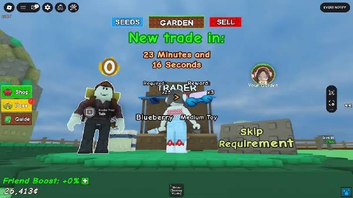 NPC Trader thường xuyên làm mới quầy hàng của mình sau mỗi 30 phút. Lần cập nhật này sẽ mang đến những phần thưởng mới cùng danh sách vật phẩm cần thiết được thay đổi. Đa số các vật phẩm mà Trader yêu cầu đều là những loại cây trồng phổ biến, dễ dàng tìm thấy trong khu vườn của bạn, chẳng hạn như dâu tây, việt quất hoặc cà rốt. Ưu điểm của những loại cây này là dễ thu hoạch và thời gian sinh trưởng tương đối ngắn.