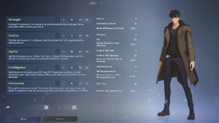 Để bắt đầu quá trình thay đổi, người chơi cần vượt qua phần mở đầu của trò chơi và đến khu vực trung tâm Hunter’s Association. Sau đó, hãy mở menu chính và chọn tab Sung Jinwoo. Tại giao diện này, người chơi có thể đầu tư điểm kỹ năng vào các chỉ số khác nhau.