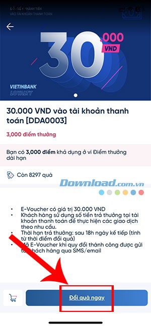 Bước 4: Nhấn vào Đổi quà ngay để bắt đầu quá trình sử dụng điểm thưởng để nhận quà.