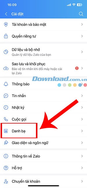 Bước 4: Nhấn chọn vào tùy chọn Cập nhật danh bạ Zalo.