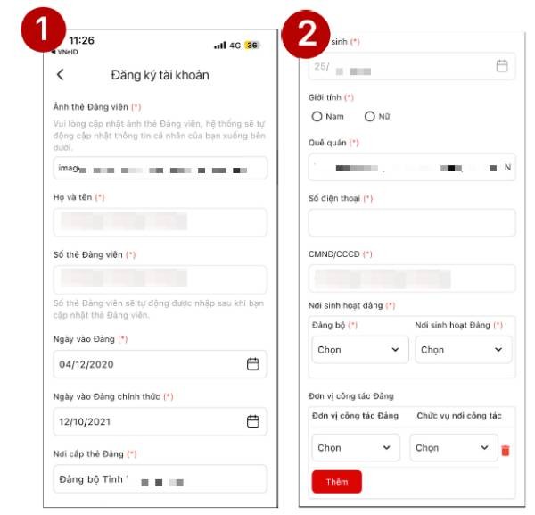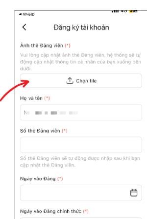 Bước 5: Hệ thống sẽ hiển thị màn hình Đăng ký tài khoản. Lúc này, hãy nhấn vào nút Chọn file để tải lên hình ảnh Thẻ Đảng viên của bạn. (Lưu ý: Hình ảnh cần phải đầy đủ, rõ ràng và không bị mất góc).