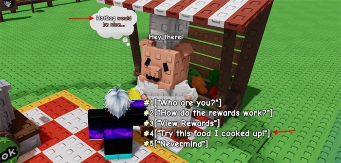 Ví dụ: nếu bong bóng thoại phía trên Chris P hiển thị , việc tặng anh ấy món ăn đó sẽ làm tăng cơ hội nhận được phần thưởng cao hơn. Dưới đây là các bước để game thủ có thể tặng thức ăn cho NPC Pig: