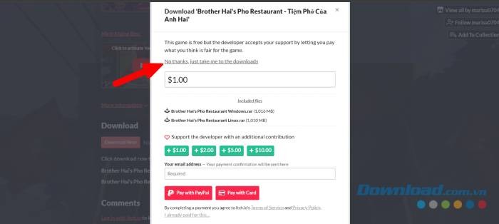 Bước 2: Một cửa sổ hiện ra, hãy chọn No thanks, just take me to the downloads để tải trò chơi về máy miễn phí.