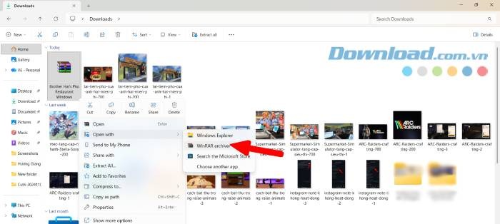 Bước 4: File cài đặt game sẽ tự động tải xuống. Sau khi quá trình tải file Brother Hai's Pho Restaurant Windows hoàn tất, bạn hãy click chuột phải vào file vừa tải, chọn Open with > WinRAR Archiver để tiến hành giải nén.