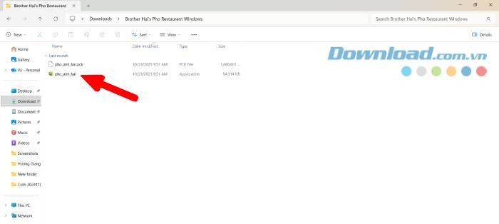 Bước 5: Chọn thư mục mà bạn muốn lưu trữ các file đã giải nén. Sau đó, mở thư mục đó và tìm file cài đặt trò chơi. Nhấp đúp chuột vào file pho_anh_hai (Application) – biểu tượng có logo trò chơi – để bắt đầu khởi động game.