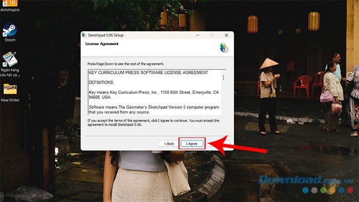 Bước 5: Đồng ý với các điều khoản sử dụng của Geometer’s Sketchpad bằng cách chọn I Agree.