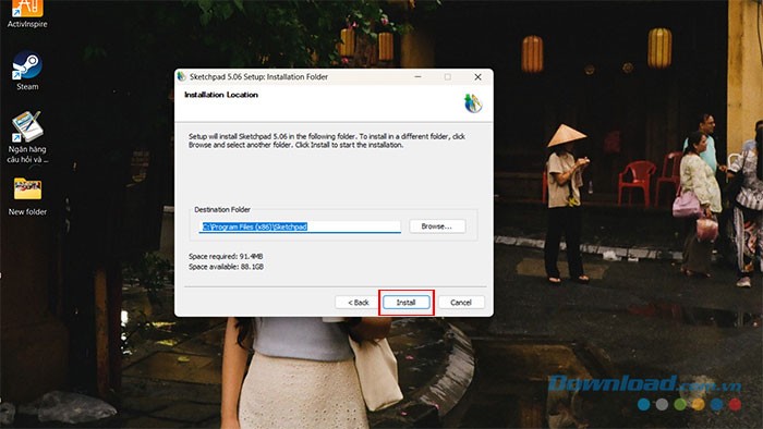 Bước 7: Chỉ định thư mục mà bạn muốn lưu các tệp cài đặt, sau đó nhấn Install.