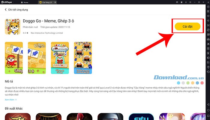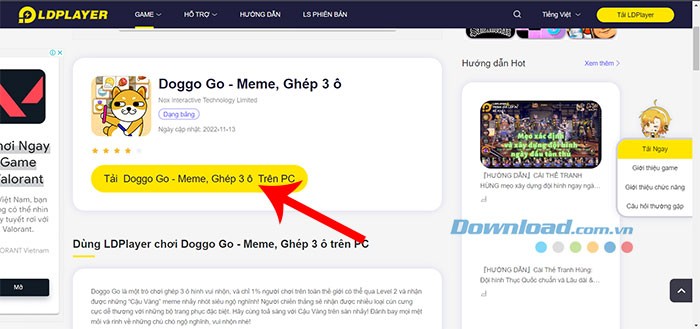Bước 1: Truy cập đường dẫn Tải Doggo Go - Meme, Ghép 3 ô để được dẫn đến trang tải game của LDPlayer.