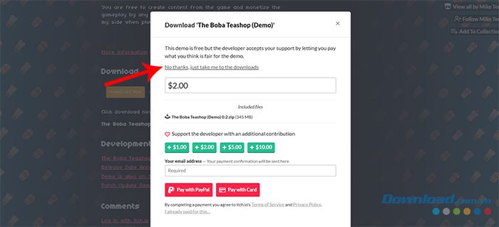 Bước 2: Một cửa sổ hiện ra, bạn hãy chọn No thanks, just take me to the downloads để tiếp tục tải trò chơi mà không cần trả phí.