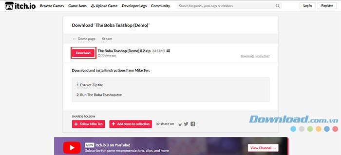 Bước 3: Tiếp theo, nhấn vào nút Download một lần nữa để tải xuống file The Boba Teashop (Demo) phiên bản 0.2.