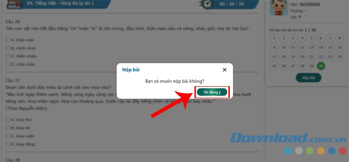 Bước 6: Nhấn nút Tôi đồng ý để xác nhận việc nộp bài.