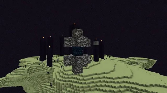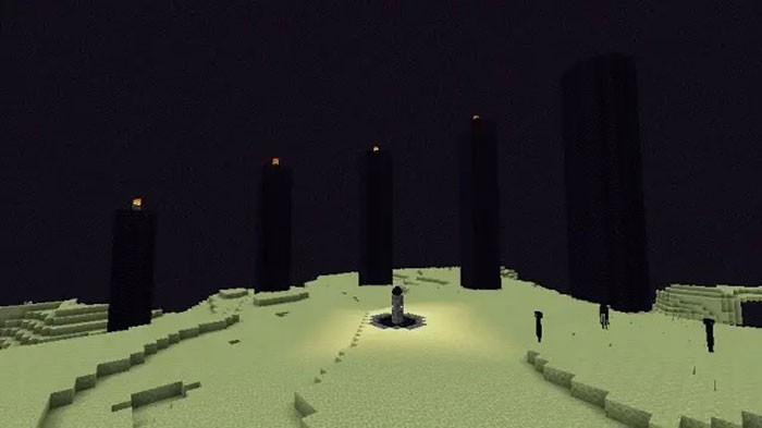 Bước 3: Sau khi con rồng đã bị đánh bại, game thủ cần tìm kiếm các cổng End gateway. Đây là những cấu trúc nhỏ nổi trên Bedrock, với một cổng nhỏ ở trung tâm.