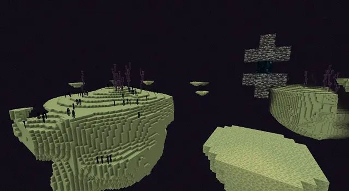 Bước 5: Cổng End sẽ đưa người chơi đến vùng ngoại ô của End. Tại đây, hãy xây dựng các cây cầu nối giữa các hòn đảo nổi cho đến khi tìm thấy các thành phố End. Nên tránh các hòn đảo nhỏ hơn vì chúng thường không chứa tài nguyên giá trị.