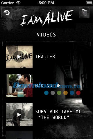 Ứng dụng cung cấp 5 video, bao gồm phần giới thiệu game, quá trình thiết kế và 3 đoạn "Băng ghi âm của người sống sót" độc đáo.