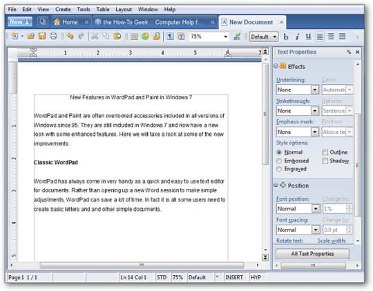 Ứng dụng này đảm nhiệm vai trò xử lý văn bản, tương tự như MS Word. Nó cung cấp đầy đủ các chức năng cần thiết để soạn thảo và chỉnh sửa tài liệu. Giao diện được thiết kế đơn giản, phân chia các thành phần theo dạng tab, giúp người dùng dễ dàng quản lý chương trình và văn bản.