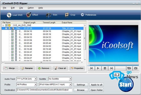 Giao diện và cách sử dụng của DVD Ripper tương tự Total Video Converter. Bạn có thể chọn đọc đĩa DVD từ ổ đĩa, thư mục hoặc file .IFO bằng cách nhấn Load DVD và chọn hình thức phù hợp. Sau khi chọn, danh sách các chapter sẽ hiển thị, bạn có thể xem thử và chọn chapter cần trích xuất, sau đó chọn định dạng và thiết lập các thông số tương tự như khi chuyển đổi video.