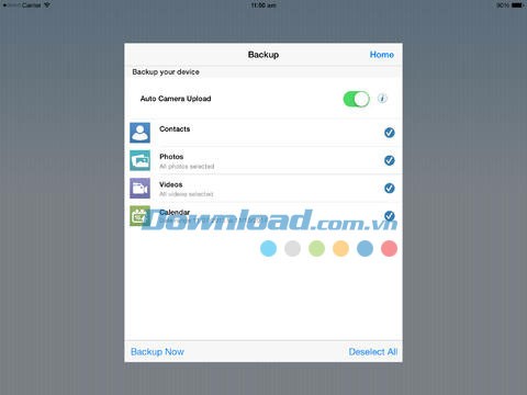 Khi đăng nhập vào ứng dụng IDrive Online Backup, bạn sẽ thấy tùy chọn sao lưu cho mọi thiết bị. Điều này bao gồm sự kiện trên lịch điện tử, ảnh, video, nhạc, tin nhắn SMS, nhật ký cuộc gọi, ứng dụng và các tệp tin khác vào tài khoản IDrive cá nhân chỉ với một chạm.