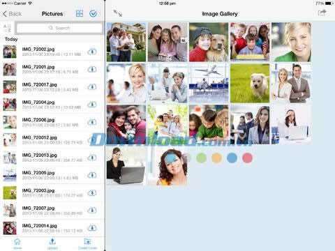 Bạn có thể dễ dàng duyệt qua các tập tin đã lưu trữ và tải ảnh, video từ các thiết bị liên kết khác hoặc trực tiếp từ máy tính của mình.