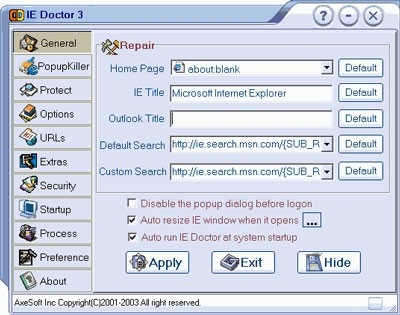 IE Doctor là công cụ hữu ích giúp bạn sửa chữa, chuyên nghiệp hóa và bảo vệ các thiết lập tối ưu của trình duyệt Internet Explorer. Phần mềm này sẽ ngăn chặn những can thiệp trái phép từ các hacker hoặc chặn các cửa sổ popup quảng cáo gây phiền toái.